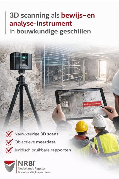 De inzet van 3D scanning binnen bouw- en verbouwgeschillen neemt toe. Hoewel het nog geen standaard onderdeel is van elk deskundigenonderzoek of gerechtelijk deskundigenonderzoek, wordt het steeds vaker toegepast als aanvullend middel voor bewijslast en dossieropbouw.